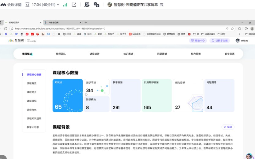 2025年9月26日下午16:00-17:30,《宏观经济学》智慧课程建设培训交流会于线上成功举行。会议邀请智慧树教学平台的宋晓楠老师进行培训和讲解,旨在提升课程团队教师在智慧课程建设方面的能力与实践水平。